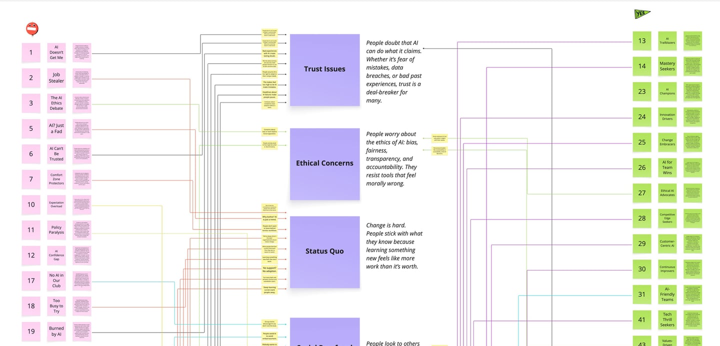 In one meeting, a manager would be all in while the team stayed quiet. Two people on the same project would use the same tool in completely different ways. Someone would use AI confidently for research, then refuse to touch it when the work became client-facing.