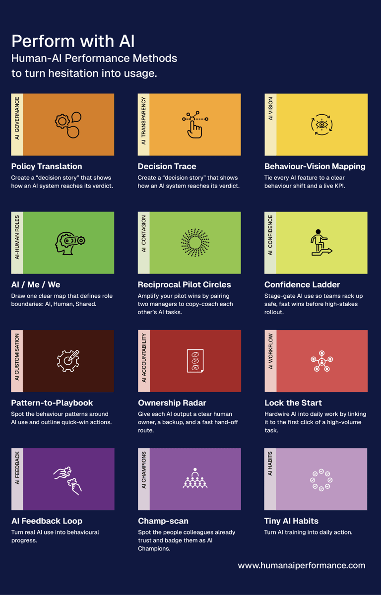 So we spent seven weeks getting close to what was actually happening across teams: where AI use held up, where it wobbled, and what made the difference. From that, we built a simple system teams can run without outside help, combining quick diagnosis with practical moves that fit into existing meetings and workflows.